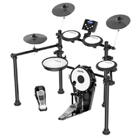 The TDX-210 features a 10" mesh bass drum pad, 8-inch dual zone mesh snare drum, 3 x 6" mesh toms, 10" dual zone half silicon crash and ride cymbals with choke function and 10" half silicon hi hat cymbal. All mesh pads feature a reduced vibration feedback system and actually feel natural to play. It also includes a sturdy 4 post aluminium rack, hi hat and bass drum pedals and all cabling.