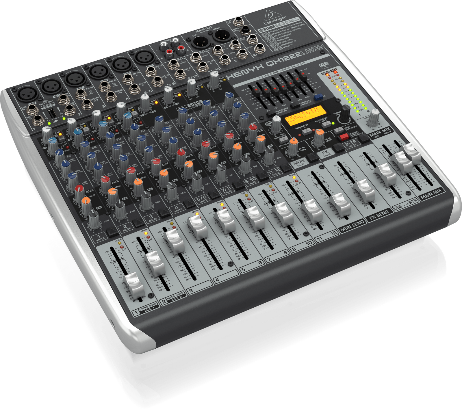 The compact XENYX QX1222USB mixer allows you to effortlessly achieve premium-quality sound. Channels 1 - 4 feature our XENYX Mic Preamps, renowned for their pristine performance, plus 2 of the 4 stereo channels accept XLR inputs, as well as Line-Level sources. All mono channels get our ultra-musical “British” 3-band EQs and easy-to-use “one-knob” compressors for the ultimate in punch and clarity. Add to this our KLARK TEKNIK FX processor with 32 studio-grade presets with dual addressable parameters, Tap function and storable user parameter settings – and the QX1222USB becomes an incredibly versatile mixer for your live performances.