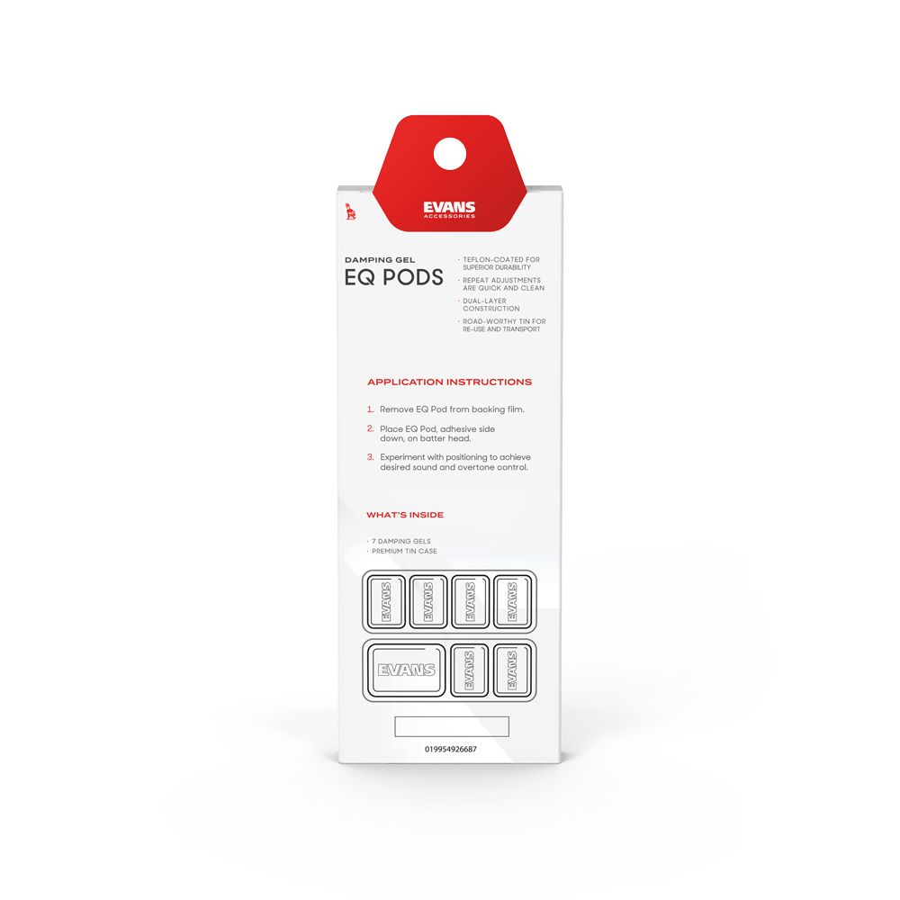 Sculpt your sound with EVANS EQ Pods, the ultimate solution to overtone, tuning, and resonance control. These polymer gels feature a Teflon-coated top side, helping them to remain stain-free and hold their shape. Designed for experimentation, you can apply and remove without surrendering grip, shape, or effectiveness.