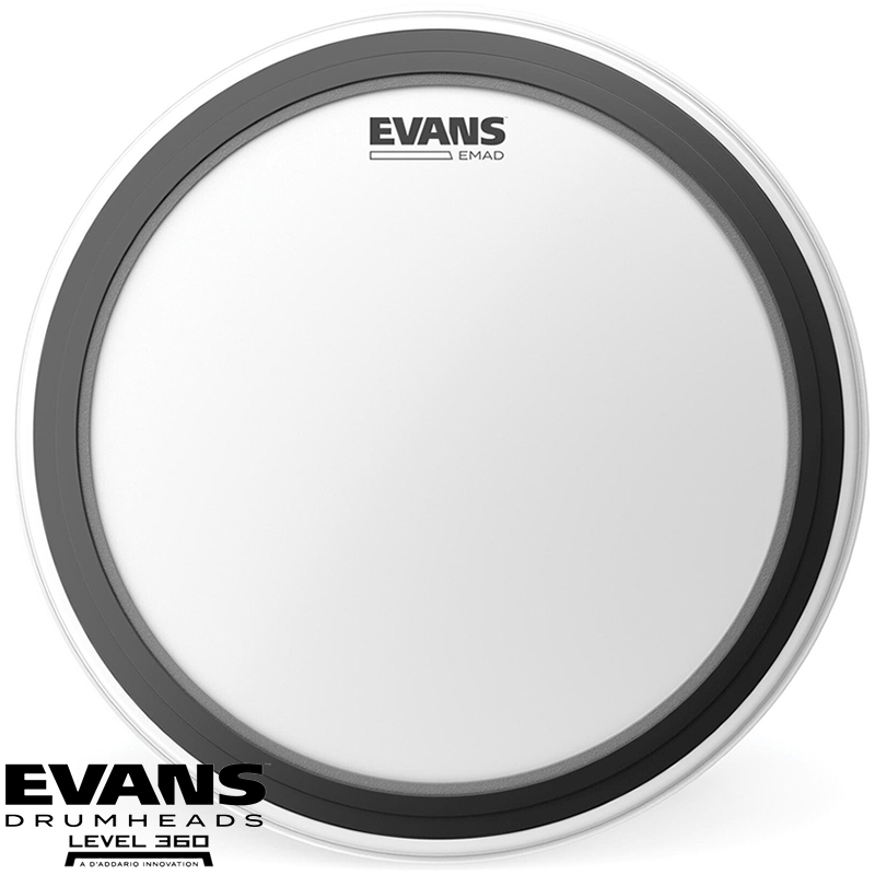 Evans EMAD series features a single ply of 10mil film providing an ideal balance of punch, power and low-end. The unparalleled industry standard Externally Mounted Adjustable Damping (EMAD) system allows the player to adjust attack and focus.