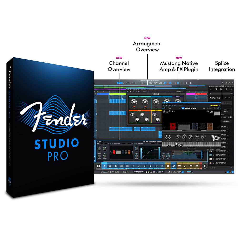 From the first riff to the final mix, Fender Studio Pro empowers musicians, producers,and creators to bring ideas to life effortlessly. Its intuitive drag-and-drop workflow, new Channel and Arrangement Overviews, and integrated Fender Mustang Guitar and Rumble Bass plug-ins make recording, producing, and performing faster, easier, and more inspiring than ever.