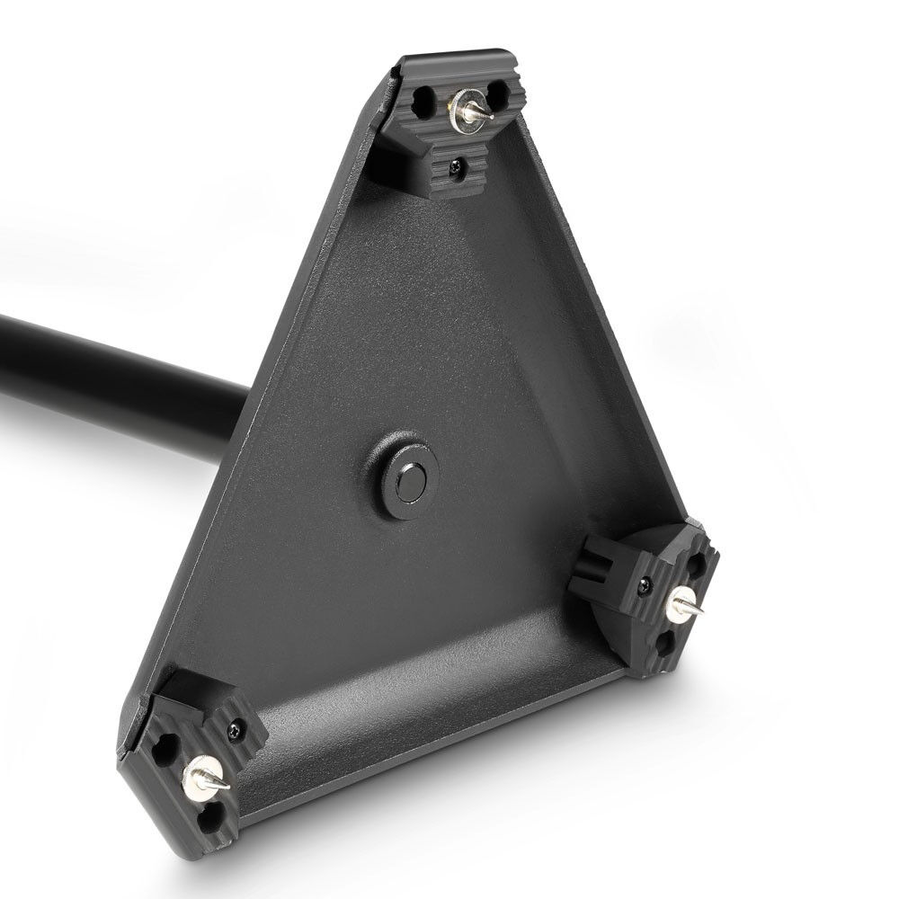 The Gravity studio monitor stand GSP 3202 VARI-TILT® features a heavy, triangular base made of cast iron and a 25x25 cm steel tray with isolating foam rests. It is tilt-adjustable by 10° and height-adjustable from 90 to 150 cm for optimum speaker positioning. The stand is supplied with a set of spikes. Mounted on the large, integrated rubber feet, these ensure effective coupling to the floor.