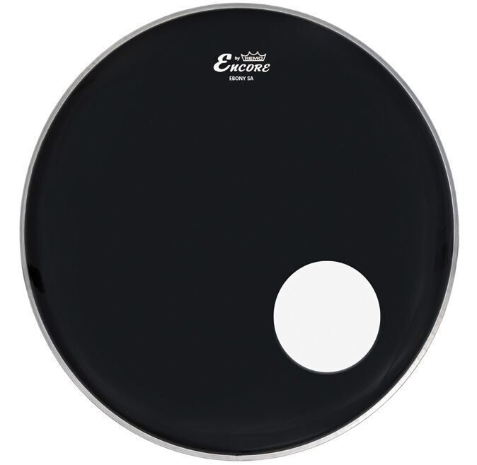 22 Inch Remo Encore Ambassador Ebony bass drum head with sound hole.
