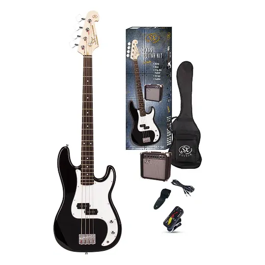 SX PB Style 3/4 Size Electric Bass Guitar Pack w/15watt Amp Black SB2SK34BThe SX Electric Player 3/4 PB Bass Pack comes with everything you need to get started on your bass playing journey. This amazing bass pack includes a 15 Watt Amplifier, Bass Tuner, Strap, Bass Bag and Cable. This pack is perfect for the young student player ready to get started on playing the bass guitar or for the intermediate player looking for a small scale bass guitar perfect for jamming, rehearsals and travel! Oxygen Music proudly stock wide range of Bass products, including the SX Electric Player 3/4 PB Bass Pack. Finished in 3 Tone Sunburst.