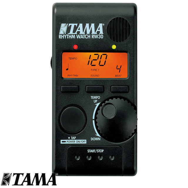 TAMA's Rhythm Watch Mini "RW30"is a brand new, compact version of our renowned Rhythm Watch. With its reduced size and weight, it is easy to bring along wherever it is needed. It also features a handy clip on the back of the body which can be easily attached to various surfaces, such as a music stand, hi hat stand, etc.