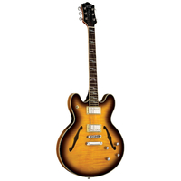 The Chicago Series TCH59VB is a semi-acoustic double cutaway guitar that captures the essence of traditional archtop design while delivering the reliability and refinement expected by modern players. Its carefully contoured body features a flame Maple top with matching Maple back and sides, creating a resonant and balanced tone that’s rich in warmth and definition. The semi-hollow construction allows for a natural, open sound with excellent sustain, perfectly suited to blues, jazz, and soulful expressive playing.