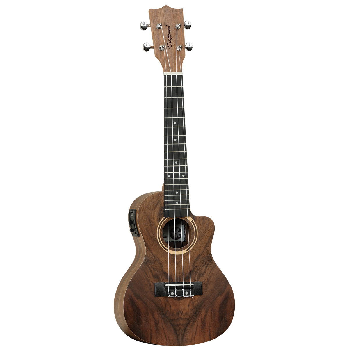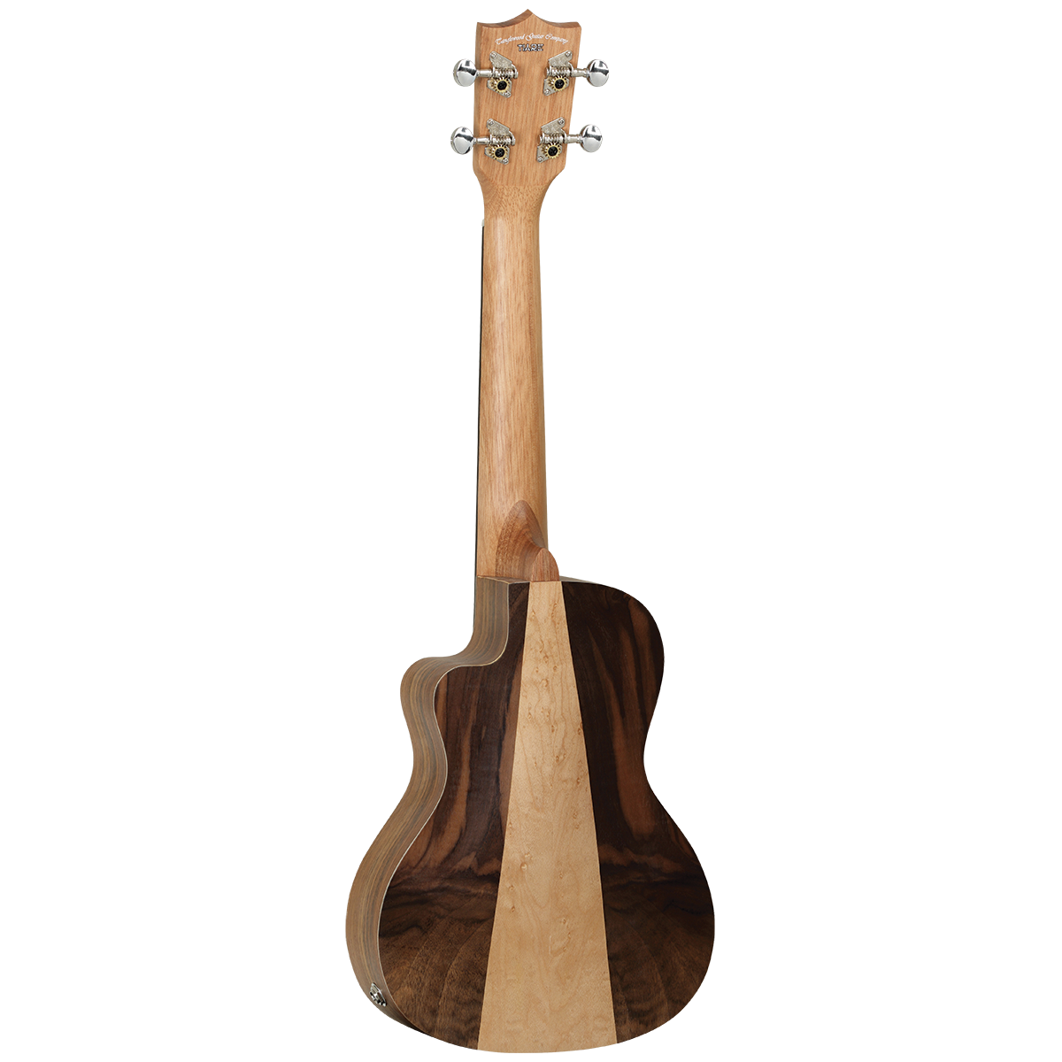 Our biggest design feature is the Tiare arched backs, for a truely authentic ukulele. The range covers a multitude of deluxe timbers including Flame Mahogany, Black Walnut, Spruce, Koa, Spalt Maple, Cedar, Figured Ovangkol & Figured Pacific Walnut, to name a few. Other features include Supernylgut Aquila strings, laser etched & abalone rosettes and premium gloss & satin finishes.