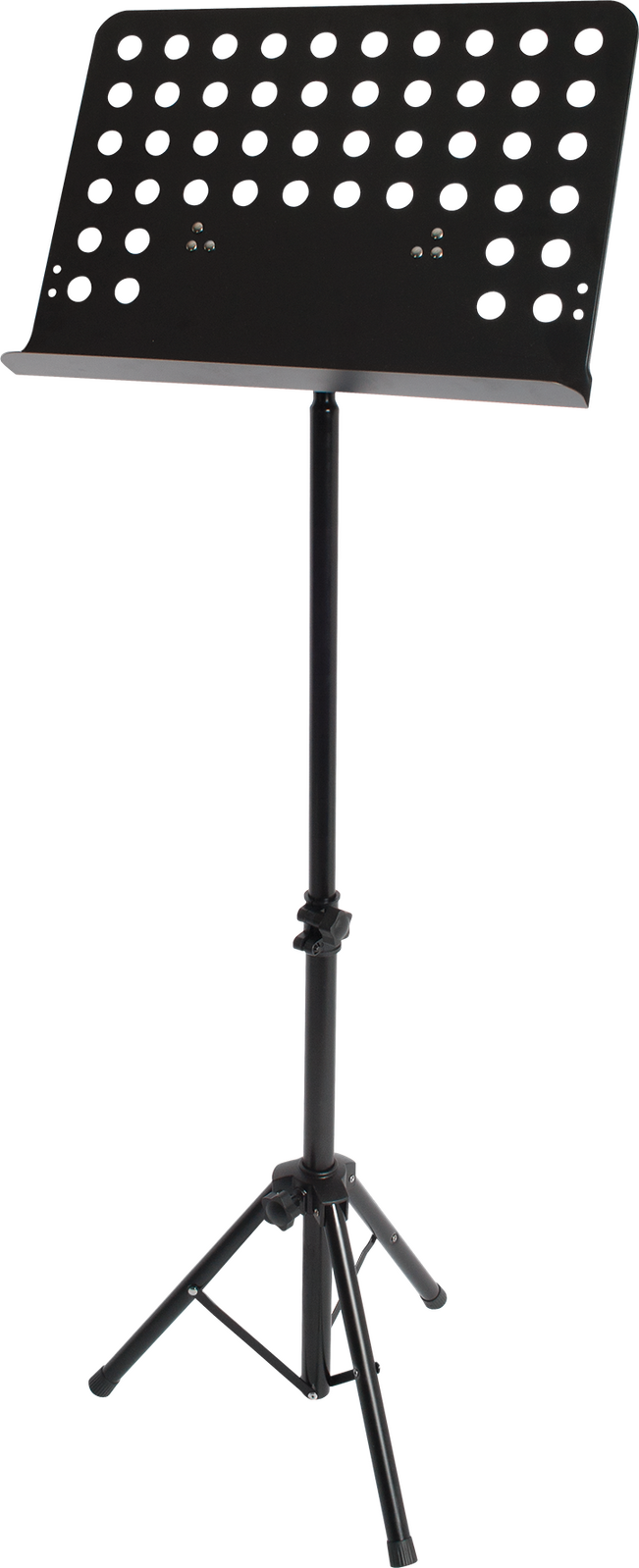 Xtreme Orchestral Music Stand MST95Black tubular steel stand with tripod base and ABS leg housing. Perforated steel music desk with adjustable angle. Height adjustable from 62cm to 110cm.